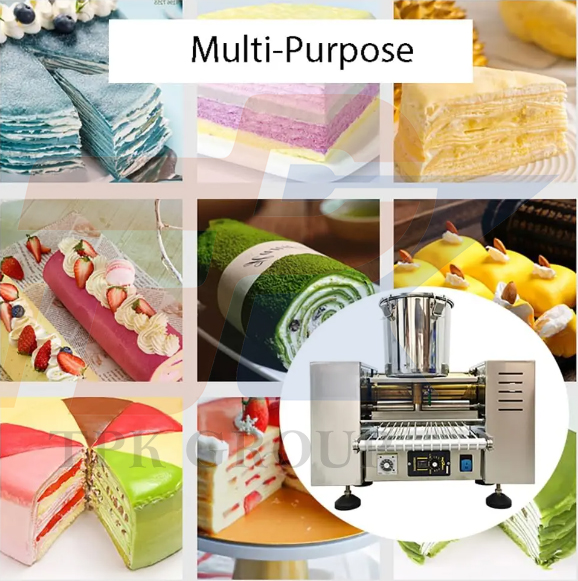 This machine can make cake layers, pancake layer, roasted duck cake, thin pancake, etc.