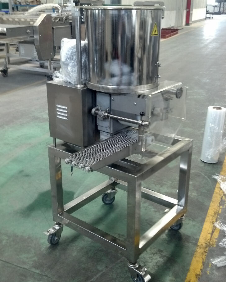 This hamburger forming machine can produce meat pie, chicken nuggets, fish flavor hamburgers, potato pie, pumpkin pie and kebab, etc product.
