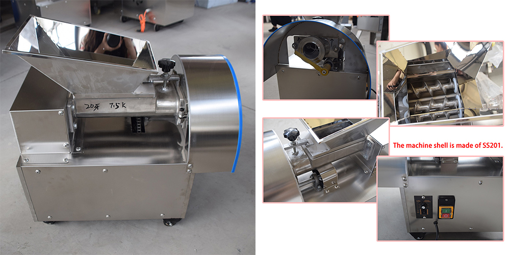 The main part of this machine is screw type feeding hopper, cutting part, powder sprinkling hopper.