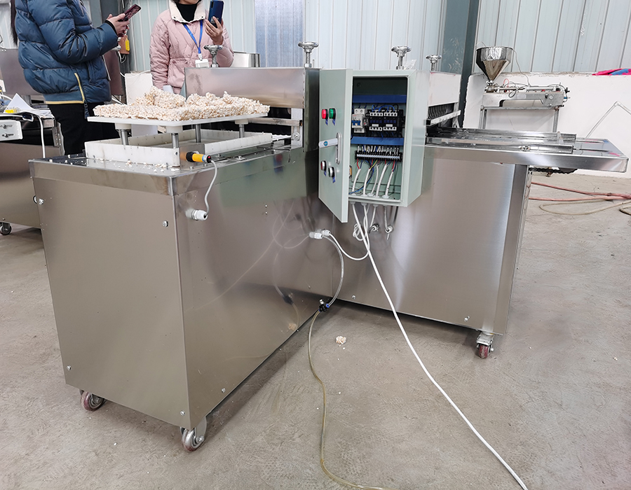 This machine is mainly for cutting cake, caramel treat, corn cake, rice candy, peanut brittle, nougat and other food into cube or rectangle shapes.